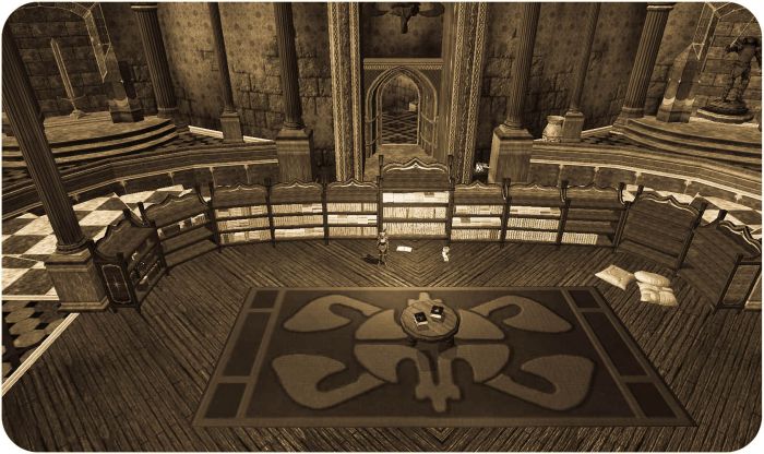 Ah, it’s good to be back. Things are slowly getting back to normal with SOE, and I managed to fit in a little time in EQ2 to go over my housing plans. Pictured above is the library of my Norrathian Museum (on the Antonia Bayle server, if you want to visit it’s a Mistmoore Craig Estate located in South Freeport under the name of Stargrace). I managed to track down five “new” (to me) player-written books, which puts my collection at 423 to date. I’m hoping that as things become even more settled players will find inspiration once again and I will be able to find even more books to add. Remember as always if you’d like to donate a book to my museum you can contact me directly in game and I will supply the blank books as well as some coin for your effort.