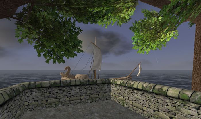I purchased my first ship yesterday, a lovely Corbita. I decided it would be much easier to bring items between my two deeds, plus there were all those logs I wanted to take back to Les Reveur, as well as some dirt, sprouts, and clay. I learned some pretty important things about ships, this being the first one I’ve ever sailed. Number one, the wind is always going to dictate (at least for my ship) where you go. No wind means you’re going no where fast (again, on my ship. Other ships are different). I tried to fight a gale early on in the morning. I slugged along at 1km/h. BAD idea. I waited until the wind died down to a breeze, and slugged along at 4 km/h. With the gale at my back, I was reaching speeds of easily 24km /h and sailing right along. In fact I was sailing so well that when it came time to dock I crashed and found myself up in the market area of Fippy Harbor. Whewps. It took me about 30 minutes to push and pull the ship back into the water instead of on land, and while I’m talking about my misfortunes lets not forget that I dropped my anchor into the water, twice, and had to frantically swim after it while praying that my ship didn’t sail away. Yes, it was quite an adventure.