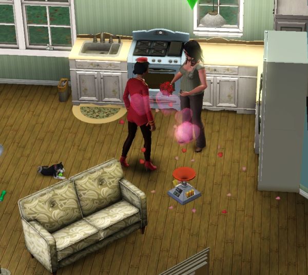 A bunch of my friends had started to play, and I was looking forward to reading a bunch of sims 3 stories, but so far there have been relatively few (yes, this is a nudge, get writing). My sim ended up casting a fire spell on a paparazzi who was hanging around outside the house, and they turned into a giant ball of flame and then a blackened ball of ash. It was amusing to say the least. It’s always an exciting time in the household because the female character is a witch, and the male is a werewolf. The twin girls are also supernaturals. Each time a full moon comes around the male sim starts howling and turns into a bristling creature. The dogs of the house (Otis and Taylor) both freak out, probably wondering what that weird smell is.
