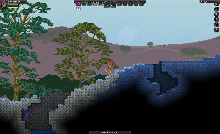 There are a lot of these ‘types’ of games coming out lately, but it’s important to note that they also all have their differences. Unlike Trove or Cube World, Starbound and Terraria are 2D and not 3D. Some people are OK with this, others are not. You’ll also have to keep in mind that the game is still in beta, there are patches, bugs, and issues with connecting. It took me two tries to get the game working and each time it hung waiting to work. Still, compared to some betas I’ve participated in, it’s very well done.