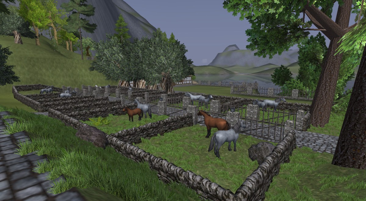 The market is coming along, and slowly but surely each day it looks more like a market and less like the deed that used to occupy the space. The 20 horse stalls are completed, though they still need locks (and keys) for each gate so the contents inside can be purchased. I’ll do that at the very end because I’ll also need to adjust my deed permissions to allow players to lead. When the market is complete I don’t expect to keep much there aside from the regular market objects, so I won’t have to worry about people stealing. The way the horse stalls work is that the keys will be marked with a price, and placed on a merchant. You purchase the key, take it to the proper pen, and then unlock the pen, and lead your new horse away.