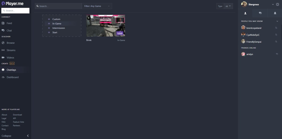 Then this week they announced Player.me Create (I’m not sure if that’s what they’re officially calling it, but lets say it is). It’s a built in system that lets you design and customize overlays for your game streams. Everything from alerts to labels to the frames. You can add your own graphics, and have control over everything from the colours to the fonts. You can browse they’re pre-created overlays and then customize those, or use them out of the box. You can also keep track of multiple overlays, and splash screens like intermission or stream is starting. It’s simple to use and you can import the URL to your layout to a streaming program like OBS or Xsplit without any hassle.