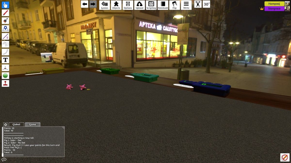 When my husband went off to depot I installed Tabletop Simulator and sent him with the ancient laptop we have. We played it together when we were both at home and I was on baby duty, and I knew it would be a great way for us to be able to game together with our very limited amount of time. One of my favourite games to play which I’ve discussed before, is Pass the Pigs, so last week we set up a game and tested out his wifi connection.