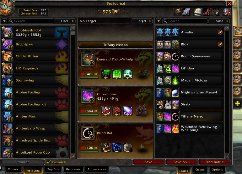 My collection isn’t nearly as impressive as it used to be, and I still debate with myself every day if I want to drop the 300-400k (each pet) gold to pick up the TCG pets that I so foolishly sold. I have been slowly working the collection back up and giving some much needed love to my pet battles, but it is a slow painful process.