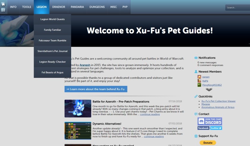 I’ve been using the rematch addon for quite some time, but what I didn’t realize was that there’s a website that compliments it so perfectly. Xu-Fu’s strategies allows you to import teams of pets through the rematch journal along with notes so you know how to defeat your opponent. You can see lists of pets you own, what pets you need to follow the guides, and discussions with other players if that guide isn’t working out for you. You can customize and adjust all of the scripts to better suit you pet battle needs – and let me tell you this site was amazing when it came to completing the Deadmines pet battle dungeon. It saved me so much time and was completed in a relatively fast amount of time.