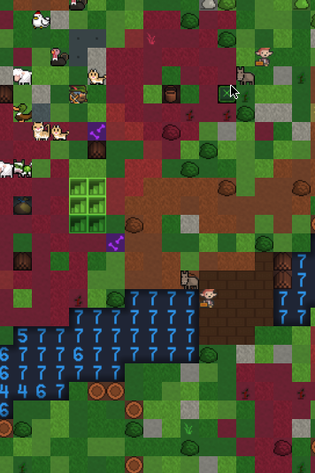 In the screenshot above the Elves have just packed up their caravan and are headed back home across my bridge. I have stairs leading down into the fortress, and my pastures and pens are down south. I learned how to set up the trade depot so the next time the elves are over I can trade some animals and instruments from them hopefully. I’m creating lots of junk items in the meantime to trade them.