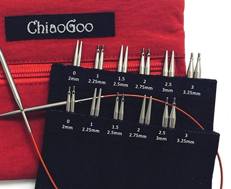 I just ordered a set of ChiaoGoo needles, and I am impatiently waiting for them to arrive from China. They are sock sizes, in 2″ and 3″ tips, with various cords. I’m hoping to use a tip from each set (the size of the needle is the same, it’s just the length of the tip that differs) and be able to knit TAAT using 2 circulars. We’ll see how it goes, and whether or not ChiaoGoo replaces my love of hiyahiya 9″ circulars. They won’t be here for quite some time, but I will impatiently wait by the mailbox for them to get here.