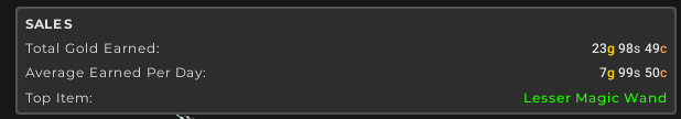 Everyone here at home has been sick, so I haven’t had any actual game time and I’m still sitting at level 13 – but I have been playing the market a lot, and I’m sitting on a comfortable amount, which is at least better than nothing, I suppose.