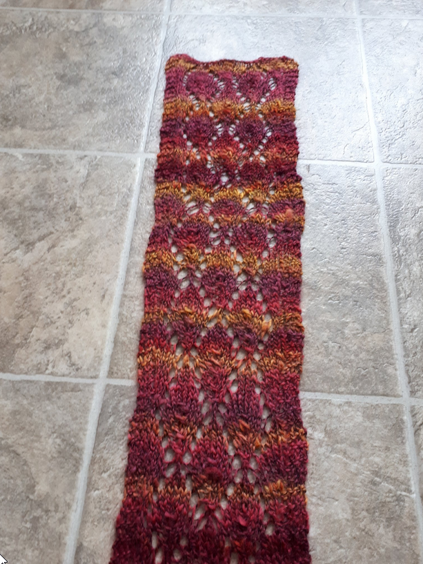It has finally been blocked (I really dislike blocking, so I procrastinate) and it looks wonderful! My first knit piece using my handspun yarn. Rustic and delightful (IMO).