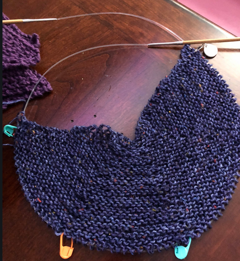 So far this is a really nice mindless knit that I can do at night while my husband is working. The tweed is working up lovely, and I love the specs of colour.