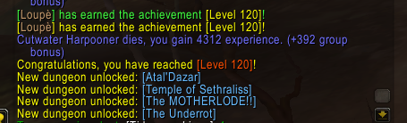 Thanks to the summer sale, I now have a 120 warrior to add to my alt army. I’ve WANTED a warrior for quite some time, but I just couldn’t seem to level one up. I’m really excited now that I’ve got one. I am hoping to use her for farming dungeons, so I’m gearing up (SLOW process) getting my cloak done, and all that good stuff.
