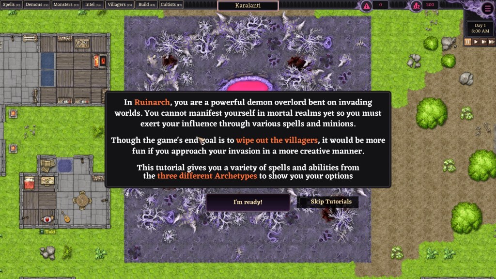 If you’ve ever played RimWorld before, then you may want to follow along with the development of Ruinarch where you basically play the evil overlord of a D&D campaign trying to kill off all of the players through various means. It’s still in EA and needs a lot of work, but the potential is there for great things.