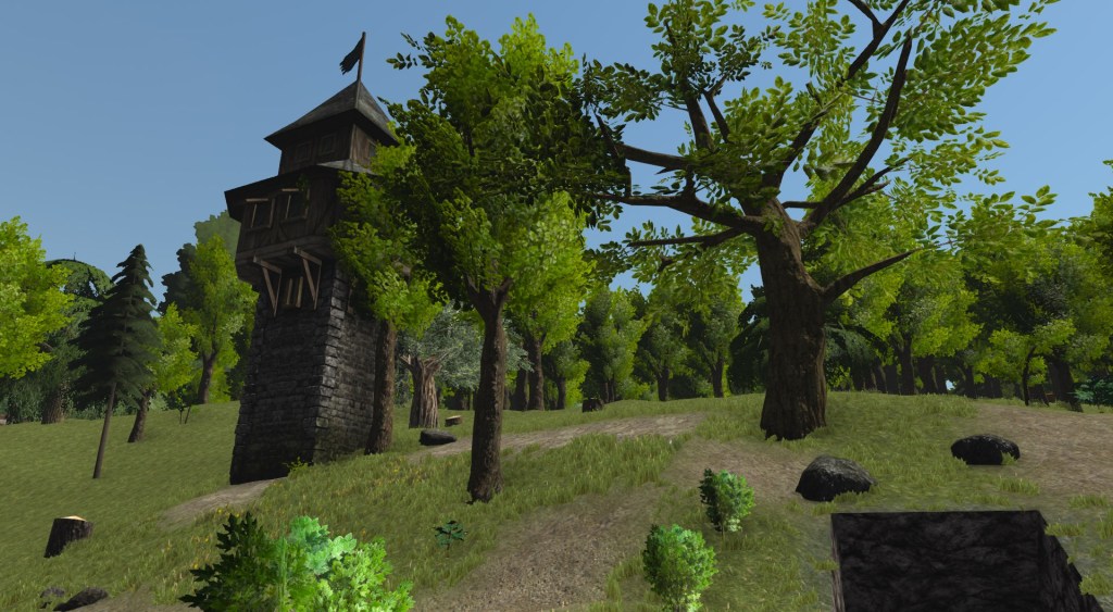 I now have two premium characters on Independence, and two on Cadence, one of the newer servers that opened up with the steam release of Wurm Online. It’s quite active, usually around 200-300 players, and it’s the same size as Independence (I believe). I’ve settled on the North East coast (seems I simply prefer that sort of location) and set up a small 1s a month deed. The first thing I did besides opening my mine to find iron, was construct a guard tower. This gave me the 30 masonry I needed in order to begin building stone buildings.