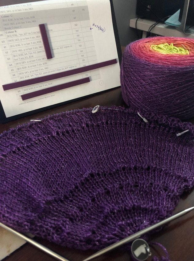 - 50% of my Stillness shawl completed (the pattern tells me my progress, I’m hoping this will be an easy one to reach)