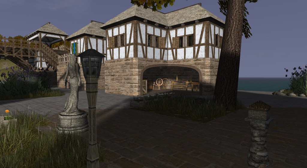 Another building completed in Quail Cove – this one is for tailoring. The sun was setting and I just loved how it all looked. Plus let’s face it, I can’t resist spinning wheels, in game or out.