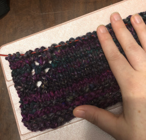 After taking a few days to think about it, I finally picked a new project to start for 2022. This time around I’m using up some handspun to create a scarf. I plan on using a few different skeins I have, and creating a slight fade between the two of them that I hope works out. I don’t have enough of any handspun to knit an entire scarf, but I do have three skeins that will work very well together (or so I hope). The pattern looks lovely, and I’m already enjoying the progress.