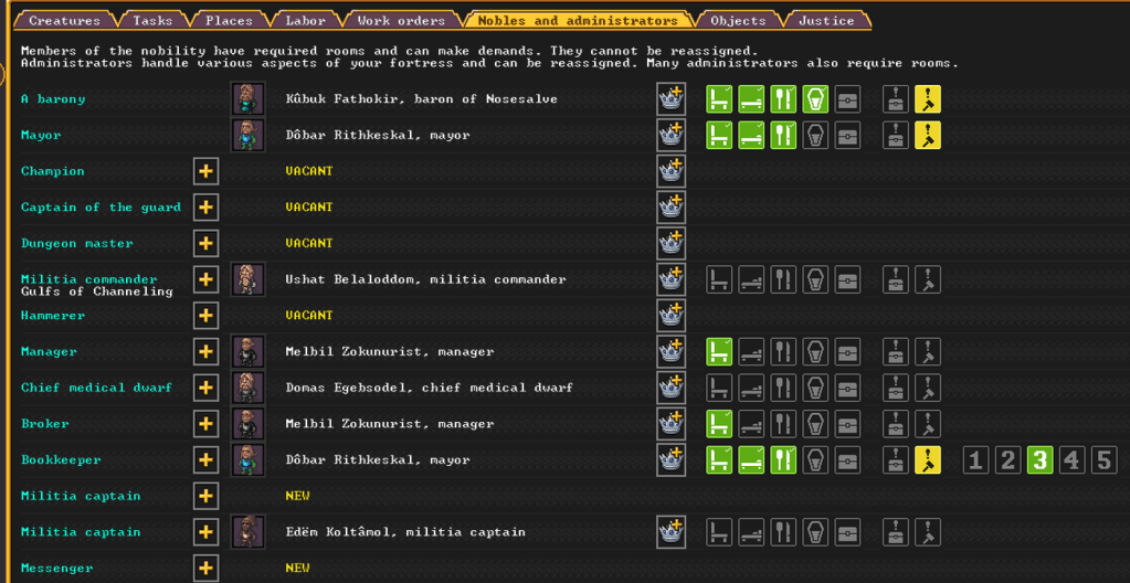 Before that though everything was going pretty well. I’ve had a few dwarves taken over by a Fae mode, and one even created a really fancy wooden mug worth $18,000! Of course shortly after a baron moved in and he demanded that he have the best of the best, so I made him a very fancy bedroom, office, dining area, and tomb.