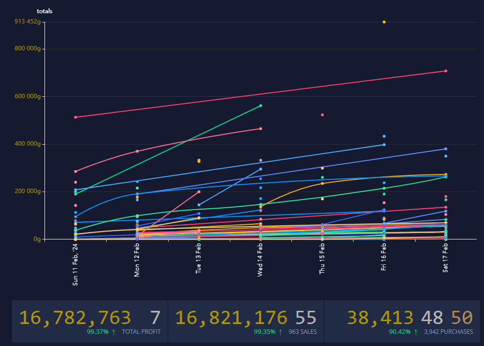 February continues to be lovely for sales, with a higher than average weekly earning and a few unusual items that I wasn’t expecting (mostly in the transmog department). I also sold a lot of the lovely dresses and suits which I imagine is thanks to Valentine’s Day. Never underestimate the player base! Of course they want to dress up for the holidays.