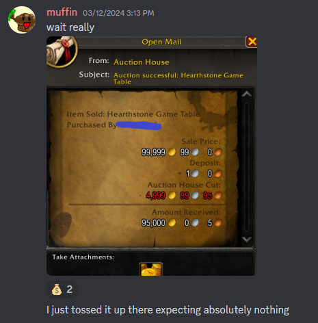 By now people have figured out you can actually sell the Hearthstone toy – and it is selling (screenshot is from the WoW Econ Discord).