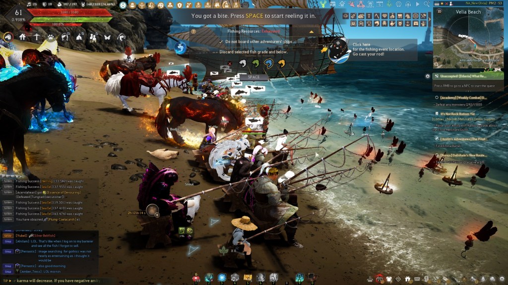 Let me be completely honest though. I’m doing very little ACTUAL game play. What I’m doing is logging in, setting up for fishing, and then going afk for 15 hours until I come back to bags full of fish. Then I take a portal and go to a far away land and sell those fish, earning around 2.5 billion silver each day. I reached Guru 10 which was a nice accomplishment.