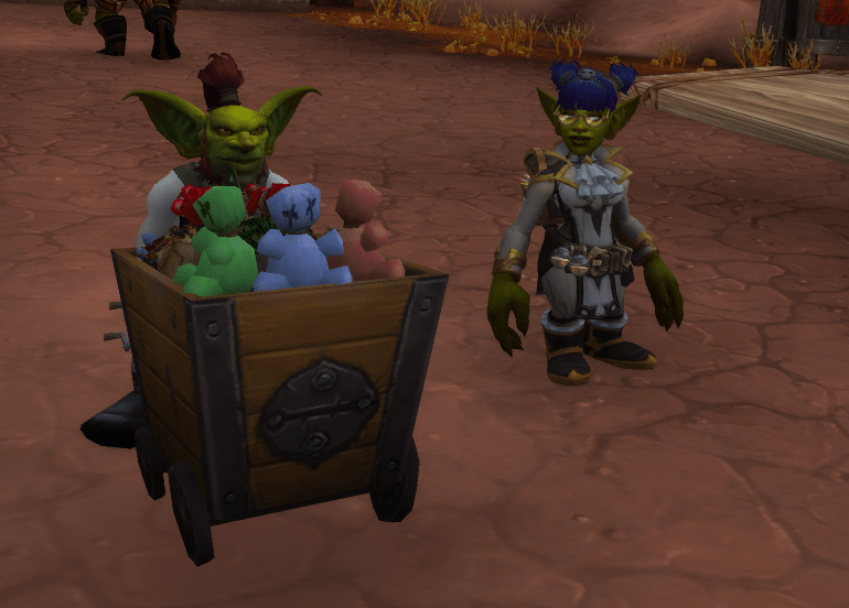 A goblin across the way waves at me.