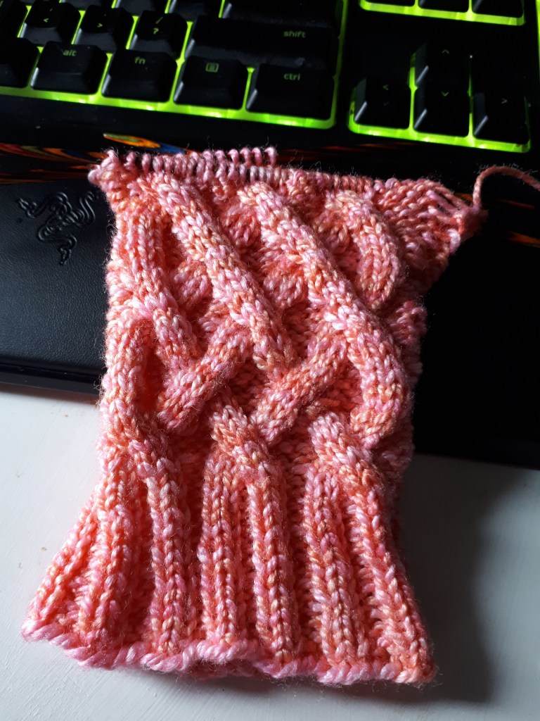 If you ever want to knit something that impresses your friends but is actually quite simple – I highly suggest you look into cables. Cables are a really simple type of stitch that LOOK really complicated, but it’s nothing more than knitting out of order. You typically put a few stitches on a stitch keeper, move it to the front or back of your piece, and then knit the next stitches, then go back and knit the ones you put on your stitch keeper.