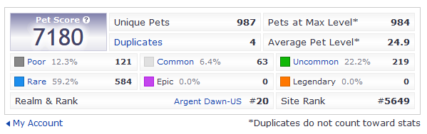 May 3rd is the next Super Squirt day for North America and I’m hoping to get the last few pets I have leveled up. I still need to turn a good portion of them rare, but that will take me a lot longer. I’m really proud of my collection, it’s one thing in world of warcraft that I really enjoy doing and working on. I’ve been collecting the trading card game pets for some time now, and I only have a few more left to get.
