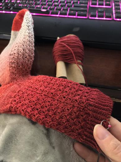 I’m finally working the cuff of my sock, and it’s turning out lovely. I’m knitting through the back loop to keep the rows neat and organized, in a 1×1 ribbed pattern. A few more rows, and I can comfortably bind these socks off and move on to the next project! With fall just around the corner I’m thinking a nice cardigan is in order, but we’ll just have to see. I don’t tend to plan my projects but just go with whatever mood I’m in when I’m searching through my stash.