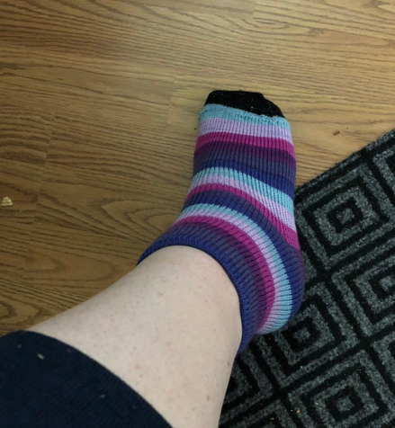 I’ve made two previous attempts at socks – the first one was a disaster, the second one less of a disaster and this is the results of the third one! An actual sock, that I can wear. Not perfect, I dropped a lot of stitches from the toe, and I didn’t knit it long enough so I hand-stitched a toe onto it, but it’s a functional awesome sock, and I’m really quite proud of it.
