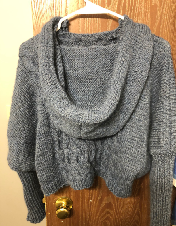 Complete the back to my cable crush hoodie. I was feeling a little too adventurous thinking I’d be completely done it by now, but that doesn’t mean I can’t make some awesome progress on it.