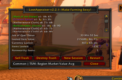 I started with a level 70 retribution paladin, with an ilevel of 445 which is pretty low for this season. I’m using a few addons, including Zygor, which will let you create a list of world quests by queuing them, and then give you directions on how to get to each one quickly and optimally. World Quest Tracker is another nice one. I’m also using LootAppraiser to track the time & any loot I pick up (LA requires TSM to function) and I’m using FasterLoot (does what it says). I’m sure there are other ways to optimize this method of making gold, such as wearing speed gear, using food/potions, etc. I decided to keep it pretty simple. The second character I did this on is my main, a 70 DH with 487 ilevel and all of the travel portals unlocked.