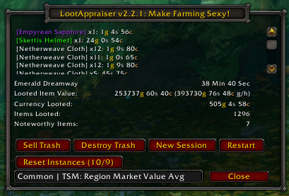 We’re on 1h30m of gold making after 30 runs of Sunwell Plateau, and this is what LootAppraiser has told us the potential gains have been: