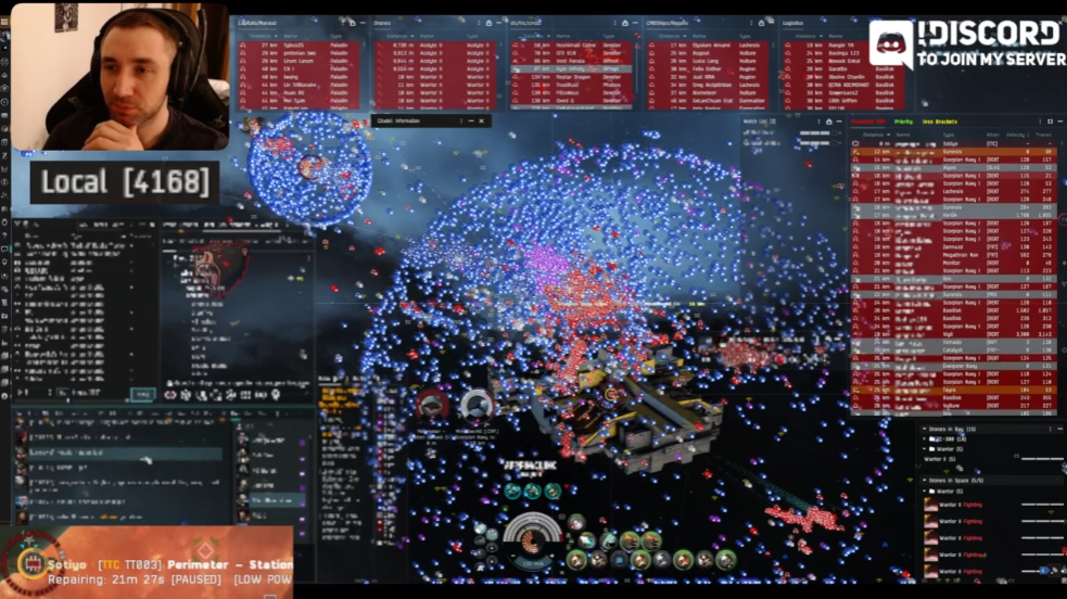 It took over 5 hours, but both of the structures fell, and I learned things like how timezones play an important role in these battles because of the way TiDi stretches out the fights. I lurked in a few streams, and listened to the community, something I truly enjoy doing. The community of EVE is.. unique. Friends and enemies alike came to twitch to chat, which I wasn’t expecting.