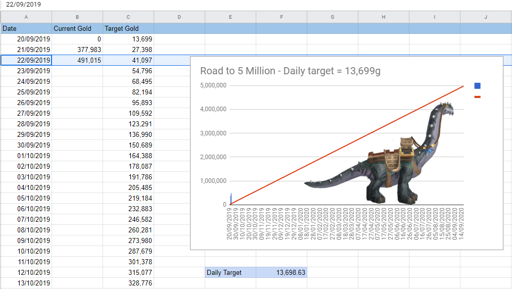 I’m a casual player at the best of times, so I set myself with a 365 day goal. A year. That means each day I should bring in at least 13,699 gold. Some days I’ll get more, some days I’ll get less, but overall it should be roughly that amount in order to hit my goal. I’m hoping to achieve it in MUCH less than 365 days, but that would just be a nice bonus.