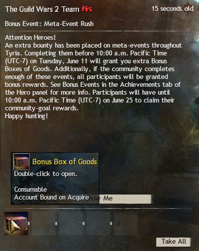 ArenaNet has been on top of their game lately with all of the events taking place. I can’t wait until the 7th anniversary which is quickly approaching. Not only will my characters get to celebrate another birthday, but I bet there’s some neat stuff going on (or at least I hope so).