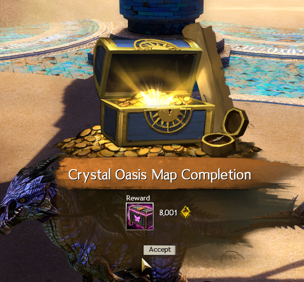So far playing GW2 with the husband is working out wonderfully. There’s so much to do, and both of us are enjoying being able to pop in and out of the game randomly between real life. We managed to get him gliding from HoT, and then the first three mounts in PoF (raptor, springer, and skimmer). We progressed the PoF story line a bit, and ran around getting map completion in Crystal Oasis too which was tons of fun.
