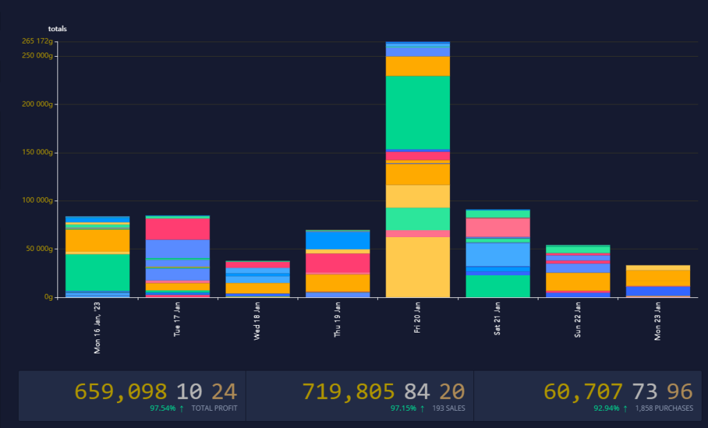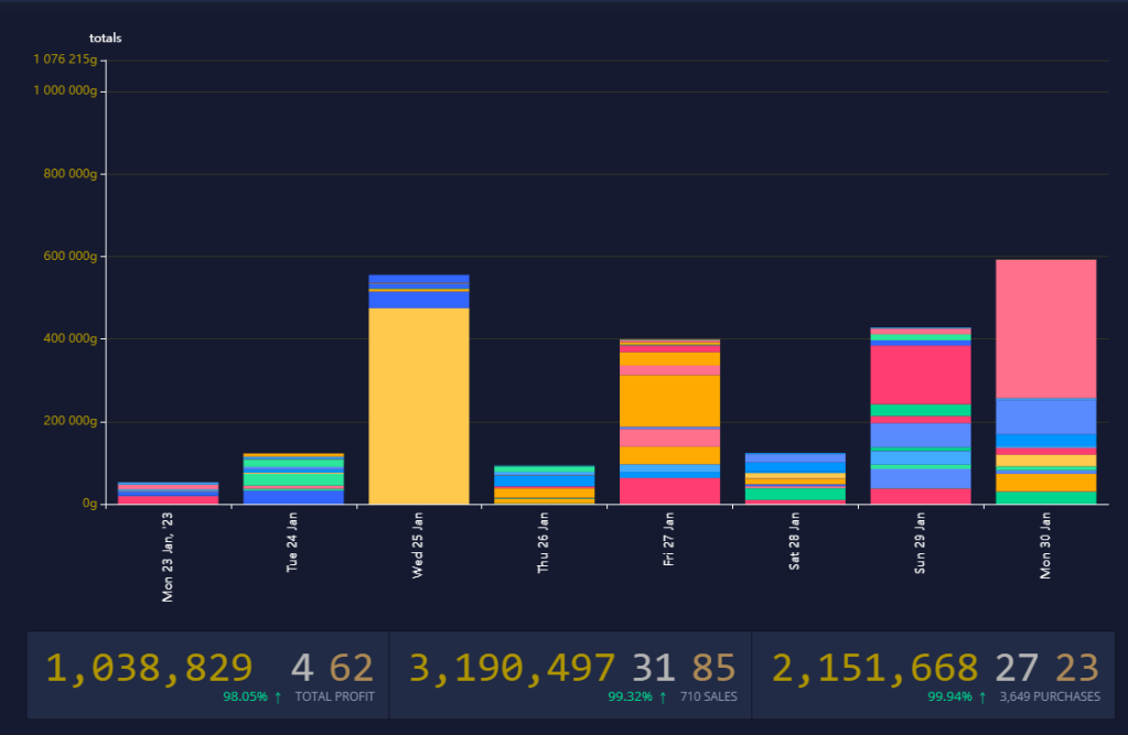 I finally broke 1 million in sales again which was a very nice feeling. Keep in mind that TSM is not displaying my craft order gold, which is where most of my income is coming these days. As far as selling on the auction house goes, I’ve been sticking to pets.