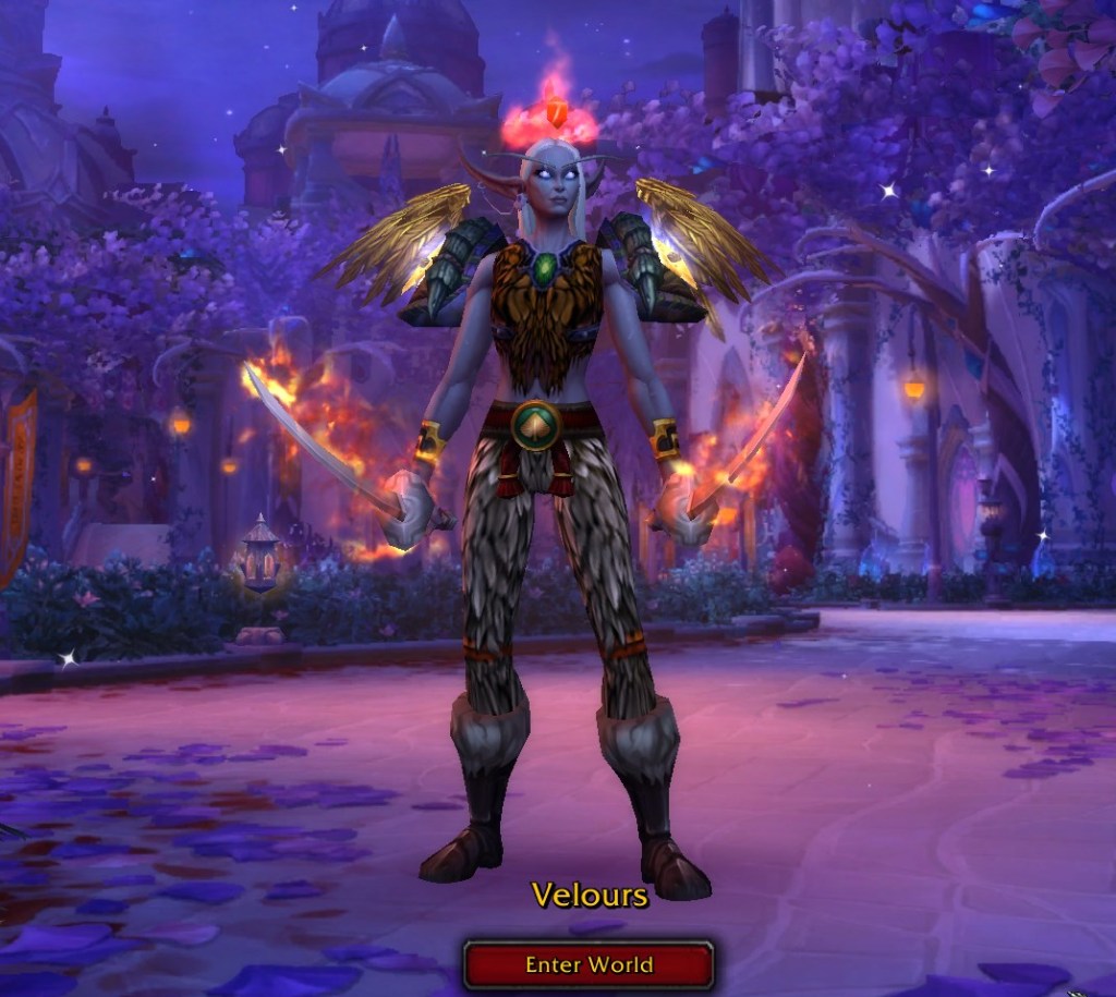 I decided to (finally) unlock Nightborne, and I race changed my vulpera monk (I also have a vulpera priest). I’m not a huge fan of the leather transmogs I have and landing on an outfit has been difficult. I decided to scrap the one pictured above and went with some tier set instead that gave a more ‘monk’ feel.